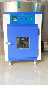 Temperature range upto 90°C thermostatically controlled. Heating elements are placed in ribs on all the three sides. Double walled inner chamber made of Anodized Aluminium of S.Steel. Outer chamber of M. Steel duty. painted. Door has double glass windows to view samples. Built in Horizontal ‘L’ shaped thermometer & perforated adjustable shelves. To work on 220/230 V AC. Supplied with or without Air circulating fan
