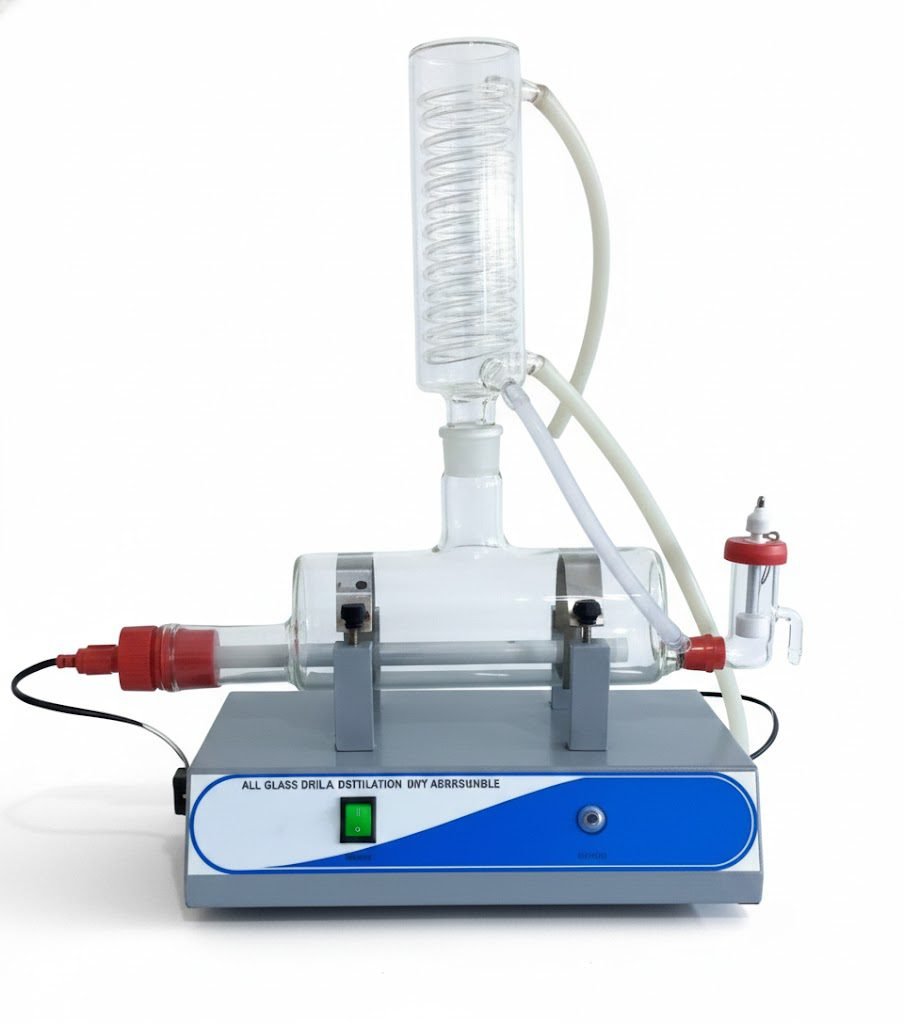 Produce high-purity, pyrogen-free distilled water with the Apex Labs Horizontal Water Distillation Unit 2 Ltrs/Hr . This compact, high-efficiency system is meticulously engineered using premium borosilicate glass to ensure the highest water quality for sensitive laboratory applications.