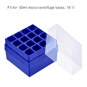 Discover the ultimate in laboratory efficiency with our blue micro-centrifuge tube rack. Engineered to securely hold up to 16 wells of 50ml tubes, this rack comes with a crystal-clear plastic lid for easy viewing and protection. Perfect for any lab setting, it not only organizes your workspace but also ensures the safe handling of your samples. With its durable construction and sleek design, this tube rack is an indispensable addition to your lab equipment.