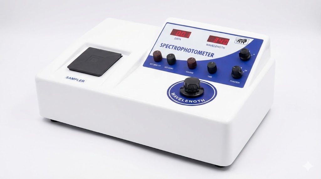 The Digital Spectrophotometer is a compact, high-performance analytical instrument designed for rapid and accurate concentration analysis of various solutions. Featuring a high-resolution holographic grating monochromator, it provides precise measurements across the visible and near-infrared spectrum. This versatile unit delivers direct digital readouts in Absorbance (Abs), Percentage Transmission (%T), and Concentration (C), making it an essential tool for chemical, clinical, and environmental laboratories.