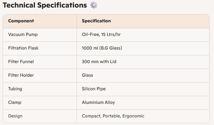 - Glass Filter Holder – Ensures precision and stability during filtration.