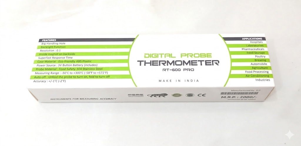 Designed for both professional chefs and home cooks, the RT-600Pro features a wide temperature range of -50°C to +300°C (-58°F to 572°F), ensuring it can handle everything from deep-frying to ice baths. The durable ABS body is built to withstand busy kitchen environments, while the foldable probe design ensures safe, compact storage in your kitchen drawers.