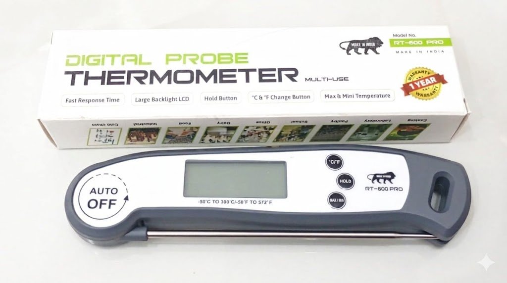 • Durable & Safe Design: Constructed with a rugged ABS plastic housing and a food-grade stainless steel probe that folds away safely when not in use.