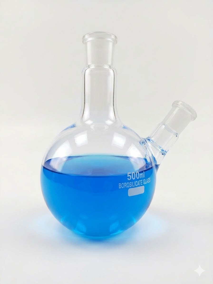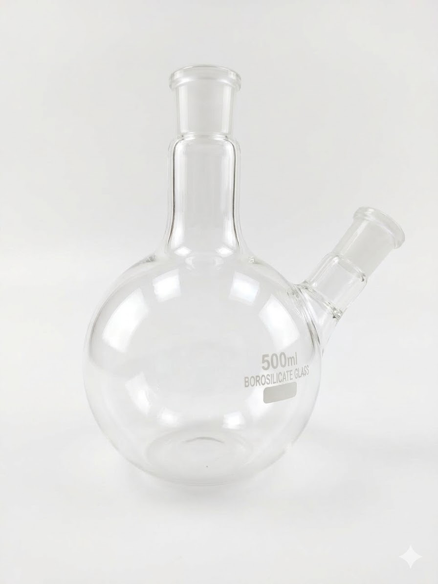 Round Bottom Flask 500mL 2 Necks (Angular) – Interchangeable Joints for Distillation & Extraction